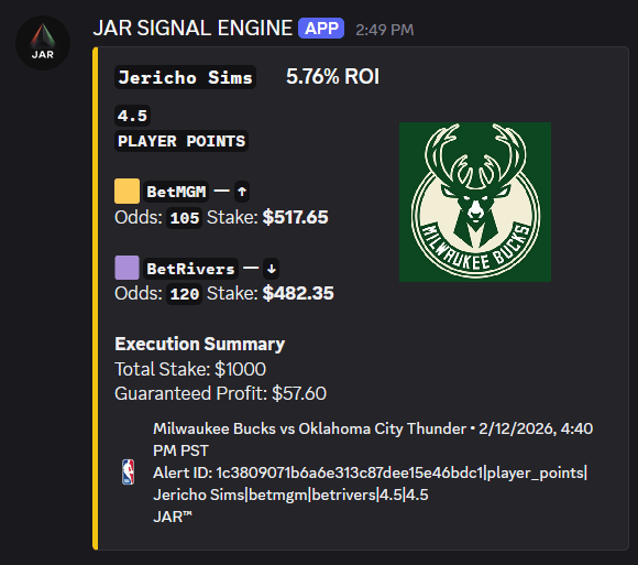 Example of a JAR™ alert identifying a pre‑game pricing discrepancy..