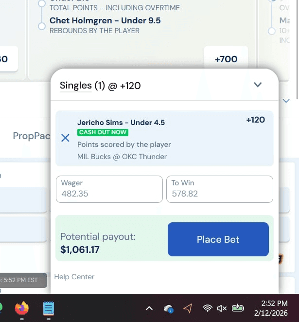 Betslip for the under, which held the better price at the time of detection.