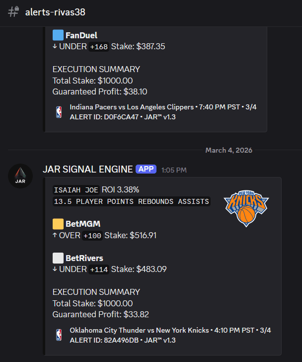 Many users begin by observing the live feed. Watching how often alerts appear, how quickly markets move, and how execution behaves is part of understanding whether JAR™ fits your workflow.